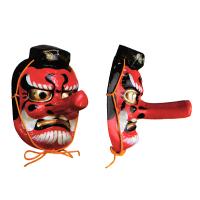 山伏帽(頭襟「ときん」)をかぶり自在に風を操る山の神の雰囲気が良く出ているデラックス天狗面です。 天狗祭りや天狗行列、神楽等の天狗舞などにご利用ください。 ポリエステル製紐付。 天狗面は、恐ろしい形相で災厄を追い払うことから、魔除け用の室内インテリアとしても人気があります。 厚紙を型成形して薄和紙を貼り、滑らかで自然な顔のライン(凹凸)を出し、熟練の職人が1点1点描いた高品位天狗面です。 ※手作り商品ですので、柄行やサイズ等若干のばらつきがあります。 目の部分は孔になっております。 ■素材 型成形厚紙・薄和紙 ※紐付 ■サイズ 巾18cmXタテ25.5cm×厚さ20cm 鼻の長さ14cm ■重さ 110グラム ■色柄 山伏帽・髪:黒 顔:赤(紅) 眉毛/ヒゲ:黒・白 目・口:ゴールド・黒 |