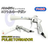 パルスエアーガン メタルボディ(トルネーダーガン) 特殊先端ノズルで高速回転させる事により、エアー振動を噴射!! カーペットなど、奥に入り込んだ、砂、ホコリなどを、たたき出します!! パルスエアーガンメタルボディの特徴 通常のエアーガンと違い先端から高速で渦を巻いた状態のエアーが出てきます。 溝すき間等の除塵が簡単にでき、細かな部分に入った水切りも、すばやく取ることが出来ます。 広範囲に吹き付けることが出来ます。 特殊ノズルによるパルスエアーの噴射で、強力に除塵、水切り乾燥ができます。 ノズルを高速回転させることにより、振動を伴うパルスエアーを発生させています この振動を伴うパルスエアーは剥離効果を持っているので、溝・隙間・くぼみ等の汚れや水にもパルスエアーが奥まで入り込みキレイに落とします。 丈夫なメタルボディ採用 ※この製品はコンプレッサーが別途必要になります。