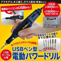 強力ハイパワー!ペン型 電動ホビールーター 本体 高速13000回転/分 無段階スピード調節 6種先端ビット 彫金/研磨/切削 ◇ USBパワードリル 1,350円 |