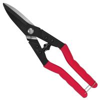 ハサミ はさみ 鋏 金網 ラスアミ ブリキ ステンレス(SK11)楽カット金切鋏直タイプ sr-250s(用途)/軟鋼材、銅板、真鍮板、アルミ板、プラスチック板、家庭菜園の摘花・芽切り等。 (機能・特徴)/ノコ目があるので対象物がすべりにくいです。 バネ付きで、ハサミの開閉が楽にできます。 カシメ部はボルトを使いスプリング座金の使用により、ナットの締付け調整を自由に変更できます。 スプリングを取りナットをゆるめて行くと簡単に分解できますので、サビ取り、研ぎなおしに便利です。 手にやさしくフィットする幅広ソフト樹脂グリップを採用しています。 (仕様)/切断目安:軟鋼材/板厚0.5mmまで。 切断目安:銅板/板厚0.5mmまで。 切断目安:真鍮板/板厚0.5mmまで。 切断目安:アルミニウム/板厚1.0mmまで。 切断目安:プラスチック、ゴム、ビニール/板厚2.0mmまで。 (材質)/刃:刃物用炭素鋼/焼入硬度HRC55±1。 柄:熱間圧延鋼板/アルファゾルコーティング。
