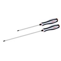 通常ラインナップのドライバーをベースにして開発した細軸モデルです。 早回しを意識し、グリップ径を通常の+2番と比較してワンサイズ小さいグリップを使用しており、 細軸ドライバーを使用するシーンを最大限に意識した仕様に変更して商品化いたしました。 更に、シャンク径を通常モデルの6.3mmから4.7mmへシェイプ。 これにより、トルクを掛けた時の捻じれをダイレクトに感じられる為、より繊細な作業が可能となりました。 ※貫通仕様では御座いませんのでお気をつけ下さい。 ※こちらは250mmシャンクの商品ページです。 写真下の商品になります。
