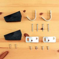 壁用J型フック(2個)、はしご用L型金具(2個)、足用ストッパー(2個)の北欧ラダー用金具フルセットです。 ■特長 はしごに取り付けたL型金具の孔へ、壁に設置したJ型フックを通して引っ掛ける、北欧メーカーならではのシンプルさが魅力です。 ストッパーは、直角にカットされた脚へはめると自然に70度に傾くよう設計されています。 留意点 ※はしご本体に標準でこちらの金具フルセットが1セット同梱されています。 壁・垂直収納用に必要な場合の追加分としてご購入ください。