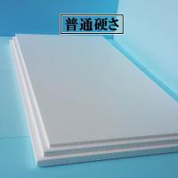 通常、ホームセンターなどで市販されている発泡スチロールの板は普通硬さで専門的にはいろいろありますが、普通品と呼ばれ90倍〜100倍で発泡スチロールとしては最大にゾウフクしたものです、製品価格としては一番安価な商品です。 本商品は、中程度の硬さで(中硬さ)60倍品です肌触りではかなり固く感じられます。