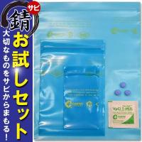 簡単錆び止め!特許取得!様々な金属に有効! cortec/コーテック 防錆油を使わない新しい米国製サビ止め剤です。 入れておくだけでさび止め!防錆効果は約2年持続。 気化性防錆なので、小さな部品や精密機械まで、様々な金属製品に使用できます。 今まで企業のみへのロット販売でしたが、日本初!当店より小売販売開始! 誰でも簡単に使える業務用「cortec/コーテック」気化性防錆剤のお試しセットです。 初めての方は、お得なこのセットがオススメ!あなたの「大切なもの」をサビからまもる!一緒に入れるだけで完了です。 防錆容積や袋の大きさがが違うので、ご自分の用途に合わせてお試し下さい。 セット内容(全て錆止め商品) 錠剤x3防錆容積7L ポーチx1 防錆容積28L チャック付き袋 小x1 83x127(mm) チャック付き袋 中x1 152x203(mm) チャック付き袋 大x1 254x305(mm) さらに防錆容積の大きいもの、大きな錆止めチャック付き袋もご用意いたしております。 ※錆び落としではありません。