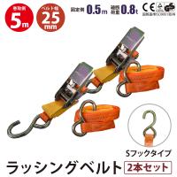 ラッシングベルト Sフックラッシングベルト ベルト 幅25mm 固定側0.5m 巻側5m 2本セット ラチェット式 トラック用 工具 道具 1,150円 |