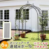 メッシュアイアンアーチ 連結用ポール6本セット[送料無料 アイアンアーチ 門 木製 バラ 薔薇 フェンス ガーデンアーチ おしゃれ 小型 北欧 ガーデニング 屋外 家具 ツタ 蔦 エントランス エクステリア ロマンチック トレリス 園芸支柱] アイアンアーチ 門 木製 バラ 薔薇 フェンス ガーデンアーチ おしゃれ 小型 北欧 ガーデニング 屋外 家具 ツタ 蔦 エントランス エクステリア ロマンチック トレリス美しく、扱いやすく、蔦が絡みやすい。 三拍子そろった優秀アーチの登場です。 ・せまいお庭への設置 ・路面に面したエントランスへの設置 ・壁面をドレスアップしたい ・イルミネーションを目立たせたい ・好きな長さのトンネルを作りたい etc... そんなときは、こんな平面的なアーチが大活躍! 蔦がからみやすい格子デザインは、薔薇やクレマチス などの繊細な植物をより美しく見せてくれます。 ノスタルジックなデザインは、時が止まったような美しさ。 花のない季節のアクセントとしても活躍します。 連結して長くつなげていくことができるので 見慣れたお庭に雰囲気のある回廊を作ることができますよ。