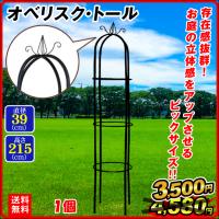 お庭の立体感をアップさせるビッグサイズのオベリスク! 商品情報 朝顔やトケイソウ等のつる性植物を仕立てるのにオススメです サイズ 約:直径40×高さ215(cm)、パイプ径約19mm 材質 鉄製 備考 簡易組み立て式 ※下部を埋め込む等、地面に固定してご使用ください。 ※定期的にネジ・ボルト等のゆるみや割れ、劣化等がないか点検してください。