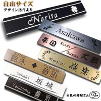 表札 マンション(送料無料)プレートサイン 人気のプレート表札が、自由サイズでマンションやポストにぴったり合います。 サイズ:規格内自由サイズ210mm×40mm以内厚み1.5mm 製品色は5色あります。 (材質:ABS樹脂) (ステンレスシルバー・ステンレスゴールド・銅・木目ウォールナット・けやき) 校正数はデザインを含めて2つまで無料。 彫刻代も含まれて降ります。 その他:送料無料は、メール便(保証無し)となります。 (代引き・時間指定は出来ません。 ) お支払方法は、お振込のみとなります。 予めご了承下さい。