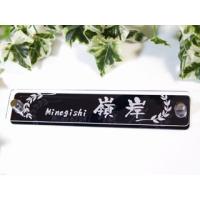 表札プレート表札がマンション表札に最適!(送料無料) 彫刻品210mm×40mm以内自由サイズ 自由サイズ:210mm×40mm以内厚み14mm(取付金具の厚みは除く) デザインは校正まで含めて2つまで無料。 彫刻代も含まれて降ります。 材質:高強度クリア樹脂プレート+ブラック光沢樹脂プレート 表札の裏プレートに文字やデザインが移りこむ程のクオリティー高い表札です。 送料無料は、メール便(保証無し)となります。 (代引き・時間指定は出来ません。 ) お支払方法は、お振込のみとなります。 予めご了承下さい。
