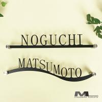 仕様 ■縦5 x 横25センチ〜40センチ程度(文字数によって異なります) ■ステンレス ■レーザーカット、黒塗り ■デザイン確定後10〜20営業日 ■字体:ブロック体大文字(アルファベットのみ) 説明 ご自宅や別荘等でご利用いただける切り文字タイプのステンレス製ネームプレートです。 アイアン表札と比べて、防サビ性の高いステンレス製なので長持ち致します。 設置場所に合わせて幅の調整が可能ですので、細かいご指定が必要な場合はご用命くださいませ。 幅の指定が特に無い場合は25センチ前後の標準サイズでデザイン致します。