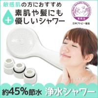 敏感肌の方に、素肌に髪にやさしい浄水シャワー ■残留塩素をカットできる、素肌や髪にやさしいシャワー ■日本アトピー協会推薦品に認定 ■浴び心地とエコへのこだわり ■浄水シャワーサイズ(約):全長21.5cm ■仕様 [最高使用温度]60℃ [使用水圧]0.05MPa(流動圧)〜0.75MPa(静水圧) ■素材・成分: [シャワーヘッド]ABS樹脂 [シャワー板]ABS樹脂 [アダプター]ポリアセタール [オーリング]EPDM [カートリッジ]ポリプロピレン、不織布、亜硫酸カルシウム ■カートリッジ交換時期の目安:約4ヶ月(2ヶ月×2本) (※1日1人あたり8分間使用した場合1人→約2ヶ月) ■生産地:日本 ■JAN:4973987649233(シャワーヘッド) <注意事項> ※シャワーの湯水は飲用ではありません。 飲用には使用しないでください。 ※長期間使用しない場合は、カートリッジを取りはずし、ホース内の水を抜いておいてください。 ※使用前に適温を確かめてください。 やけどのおそれがあります。 ※給水、給湯圧力の差が大きい場合、使用中に湯温が急上昇しやけどのおそれがあります。 ※表記の用途以外は使用しないでください。