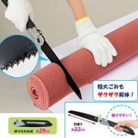 ■カーペットから物干し竿まで、大きいゴミを小さく切れる、万能のこぎりです。 ■折り畳み式で収納しやすく、ロックボタンが刃のとびだしを防ぎます。 ■これまで粗大ゴミとして処分していたパイプ椅子や物干し竿なども小さくカットできます。 ■刃の角度はなんと3段階に調整可能!お好みの角度で作業できます。 ■鉄と炭素の合金、「炭素鉄」を刃に使用しています。 ■大型のプラスチックケースもコンパクトにカット! |