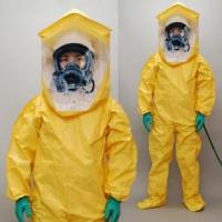 タイケムF型(タイベックプロテックF型)防護服特長 * 高圧水洗浄機等を使用する汚染除去作業時の防護服に相当します。 * 米国デュポン社製タイベック(R)に高性能バリアフィルムをラミネートしたものです。 * 耐水圧は2000m/m以上です。 * ほとんどの有機、無機化学物質よる透過にたいしての高いバリア性。 * 血液、血液をかいして伝染する病原体(バクテリア、ウイルス)や体液に対するバリア性。 * 化学兵器に対する素材透過データ |