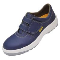 静電靴/安全靴/スニーカー安全靴 ベルクロ(マジックテープ)留め ■JIS T8103 ED-O/C2/人工皮革製/S合格 ■先芯:ワイド樹脂 ■甲被:人工皮革 ■中敷:EVAカップインソール(抗菌・防臭) ■靴底:発泡ポリウレタン2層底 ネイビー(紺) 23.5〜28.0(EEE) 標準重量:730g/足 ※両足での重さです ※標準重量は、26.0cmを基準としています。 ■静電気帯電防止性能 人体に帯電した静電気を靴底を通して地面に逃がす事で、帯電を解消し静電気による悪影響を解消します。 ■ワイド樹脂先芯(S種) 足先ゆったりの幅広樹脂製先芯を採用しました。 樹脂製ですので軽量で、サビや冷えに強く、鋼製先芯と同じJIS規格S種(普通作業用)と同等に安全性能を持っています。 ■すべりに強く、耐摩耗性とクッション性に優れた靴底 発泡ポリウレタン2層構造の靴底は、JIS規格付加的性能F合格の滑りにくい靴底意匠。 クッション性と耐摩耗性にも優れた靴底です。