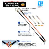 耐荷重10kg,15kgのセーフティコードが出ました。 コード部分もカラビナ部分もタフな仕上がりで、 破断強度の試験も大幅にクリア。 12.7用のインパクトレンチにソケットを装着すると、 5kg軽く超えるので、 重いものをぶら下げるのに最適です。 カラビナはツイストロックです。 平ロープが15kg、丸ロープが10kg耐荷重。 |