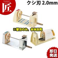 「おいしい」ツマが手軽にすばやく切れる手動つまきり機です。 限られたスペースでも使いやすく、優れた機能をコンパクトにまとめました。 独自開発の送り装置の採用で、どなたでも簡単につまをきることができます。 クシ刃を外せば、リボン切り(らせん状)も切れるので、さらに盛り付けを美しく仕上げます。 [ 仕様 ] 自動送り装置付き:1mmピッチ 本体サイズ:115×270×160mm 重量:800g 取付可能最大径:130mm 取付可能最大長さ:120mm 付属品:1.0mmクシ刃/2.5mmクシ刃/4.0mmクシ刃 |