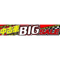横断幕「中古車 BIGSALE(新)」。 ・遠くからでも目に付きやすいので、集客力抜群!! ・買取店ではカラフルさが絶妙で文字バランスも良く人気の横断幕です。 ・厚手の生地を使用しているため、少々の風や雨でも破けない丈夫な横断幕です。 ・防災加工はしていませんのでご注意ください。