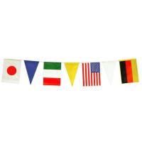 連続旗「万国旗三角入」3本セット。 ・日本、アメリカ、ドイツなどの国々を鮮やかに照らしてくれます。 ・中古車展示場の雰囲気を明るく華やかに見せるために最適な販促用品です。 ・イベント時はもちろん、常時飾り付けもできます。 ・雨、風に強いので天候の良し悪しを選びません。 ・ロープ付きで長く繋げていくことが可能です。