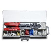 配線用ツールセットは、電装部品の取付けや配線類の作成作業などに便利な電工ペンチと端子類がセットになった商品です。 [セット内容] ・電工ペンチ×1 ・ギボシ端子オス×10 、スリーブ×10 ・ギボシ端子メス×10、スリーブ×10 ・平端子メス×5、スリーブ×5 ・平端子オス×5、スリーブ×5 ・2マタギボシ端子メス×5、スリーブ×5 ・2マタギボシ端子オス×10、スリーブ×10 ・クワ型端子×3、スリーブ3 ・ワンタッチ配線コネクター赤×3、青×3 ・ケーブルタイ×10 |