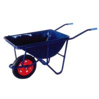 ○ 一輪車(深型カート車) 深型カート車 生コンや土などを入れて運ぶのによく使用されます。 一般的な運搬用一輪車です。 ノーパンクタイヤ仕様ですので、空気入れ不要です。 容量が大きいバケットが深いタイプです。 色は変わる場合がございます。