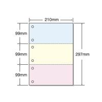 色々なソフトに対応した自由な設計が可能です。 納品書、請求書、支払明細書等にご利用になれます。 ■サイズ:A4(縦297×横210mm) ■用紙厚さ0.09mm ■綴じ穴間隔80mm ■坪量64g/m2 ■仕様:カラー3面6穴 ■ミシン目2本 ■入数:500枚 ■いつもの帳票がカラフルでさらに使いやすくなりました。
