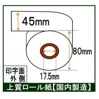 20巻入! 1巻あたり 100円!東芝テック 45R-80W対応 レジロール紙 レシート 普通紙ロール 上質 レジ レジスター 国内加工・国内メーカー紙使用。 汎用タイプ ■サイズ:幅45mm 外径80mm 紙管内径17.5mm(芯あり) ■紙 質:普通紙(上質紙) ■紙 厚:82ミクロン ■入り数:20巻入り ■印字面:外側 ※インクリボンを利用して印字するタイプのロール紙です [対応機種 TEC] ・AR−20 ・AR−30 ・AR−300 ・FR−30 ・FS−1450 ・FS−1650 ・FS−1755TM ・MA−300 ・MA−301 ・MA−305 ・MA−1400 ・MA−1450 ・MA−1650 ・テクセル9300 ・テクセル9400 ・テクセル9800・テクセル9900 ※芯棒を通すタイプの機種は、必ず内径をご確認ください ※上記以外の機種でも、サイズがあえばお使いいただけます。