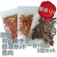 訳あり(切り落とし) 和鶏ササミジャーキーソフトと豚耳と鹿肉ジャーキー お試しパック 1,000円 |