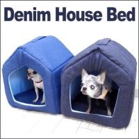 デニムハウス型ベッド (ドーム 睡眠 家 クッション 小型犬 ハウス 屋根 デニム 風よけ 保温) 3,475円 |
