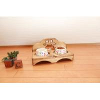 カントリー調でワンちゃんネコちゃんが楽な姿勢で食事が出来るペット用えさ台です。 背面の肉球のくり抜きがとっても可愛い食器台です。 直径約13.5cmの食器が2個置ける、ダブルタイプなので フードとお水、または2匹分のフード、どちらでも置いてもらえます。 ワトコオイル仕上げなのでペットにも安心、汚れても拭き取れるのでお手入れも簡単です。 愛犬・愛猫のゴハン時間をもっと楽に、もっと楽しくしてあげましょう♪ ■ご注意 木材に多少の割れ・節などがあります、または文字やイラストのかすれなどもございますが不良の対象にはなりません 手作りの風合いを出す為自然の風合いを生かす為良品とさせて頂いております。 ハンドメイドになりますので既製品の様に、同じ物はございません。 木目お色味等は一点一点異なりますのでご了承下さい。 掲載画像内の小物類は、商品に含まれていません。