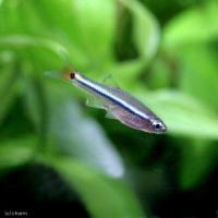 名前の通り赤く染まるヒレと体側のブルーのラインは観賞価値が高く、生餌やパイロットフィッシュとしても扱われたりしますが、飼育しやすく初心者の方にもお勧めの入門魚です。 アクアリウムではポピュラーな種ですが、生息地の白雲山周辺では開発によりすでに絶滅したと言われています。 飼育は容易でエサもなんでも良く食べます。 温帯種のため低温に強く、コップなどの小型の容器で飼育できることからコッピーの愛称でも知られているアカヒレです。 サイズM:2〜3cm前後 最大サイズ:4cm前後 水温:10〜27度 |