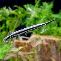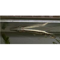 コロンビア、ベネズエラ原産の肉食性のカラシンです。 古代魚のガーのようなスレンダーな体形と尖った口を持つ完全な肉食魚で、 銀色の体色と野性味あふれる姿から人気の種です。 体色は銀一色で派手さはありませんが、黄色い尾ビレと尾筒の黒いスポットがアクセントになっています。 飼育はエサと水質に注意が必要で、肉食性でメダカ等の小型の生餌を好み、口に入る小さなエビや稚魚との混泳できません。 現在サイズ:4cm前後 最大サイズ:30cm 水温:22〜28度 |