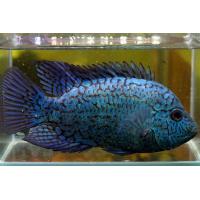 成熟したオスの額部が盛り上がる、古くから親しまれているシクラソマの代表種。 同種のペアでは仲が良いことで知られていますが、他種に対しては気性は荒めで、混泳には注意が必要です。 全長約22センチ。 現在約5センチ。 おとひめEP-4、ブラッドレッドパロットなどよく食べています |