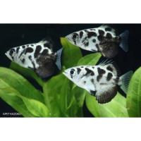 タイの湖沼に住んでいるポピュラーな純淡水性フグで、全身に斑紋が点在しますが個体によって緑系だったり茶系だったりと色柄はさまざまなので、好みの色柄を探すコレクション性の高いフグともいえます。 現在約7センチ、全長約10センチ。 今回はグリーン系の個体群が入荷しました。 クリルをよく食べています |
