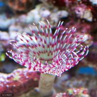 ケヤリ販売名ケヤリおまかせ品種学名(※)Sabellastartesanctijosephi他(※)…改良品種や学名が不明の種は流通名での記載の場合があります。 分布西部太平洋〜インド洋飼育要件鰓冠の最大直径→6cm温度→24度前後照明→不要水流→弱(フィルターからの水流で十分)餌→与えれば食べる(液体フードを週1回程度)水質→通常ろ過で可※…飼育環境は一例です。 必ずしもこの環境下であれば飼育できることを確約するものではございません。 種類詳細鰓冠と呼ばれる美しいエラを持つゴカイの仲間です。 ケヤリの仲間では安価な部類に入りますが、カラーバリエーションも多くコレクション性の高い種類になります。 ゴカイの仲間であるケヤリムシのなかでもポピュラーな種で広い範囲の海域に生息しています。 花のような形をした鰓冠を広げ水中のプランクトンを濾しとって食べます。 弾力性のある管を作り、岩の隙間など … ....... |