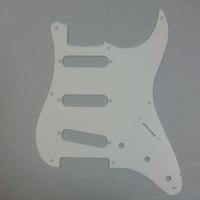 62年式11穴タイプ、ホワイト3PLY、インチ規格品 Fender USA互換品 現行USA 60's Pickguardsを元に製作された商品となります。 裏面はアルミテープでシールド処理してあります。 主な適合モデル 現行Fender USAおよびMexico製ST60'sタイプなど 62モデルと72モデルの違いは比較画像をご参照ください。 赤丸部分のねじ穴位置以外は62,72ともに共通仕様となります。 サイズ、ねじ穴位置ともに上記モデルに準じております。 (ご注意) ■年代や個体差に起因するズレが生じる場合もございます。 ■Fender Japanや他メーカーのモデルへはネジ穴位置に大きなズレが生じる場合がございます。 ■トップ面はキズ防止用保護フィルムが貼ってありますが、裏面はキズ防止用保護フィルムがない為、製造輸送過程に伴うスリ傷やシミがあることがございます。