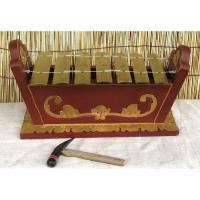 インドネシアはバリ島の鉄製ガムラン楽器です。 青銅製の物に比べると質は落ちますが、本物に負けないくらい重厚で余韻のある音が響きます。 音階はもちろんガムラン音階。 低いほうから順にC♯、F、F♯、G♯、C、C♯、Fと並んでいます。 >こちらは、少し小さなサイズですが、音は結構大きく鳴ります。 ※ペイントの柄は異なる場合がございます。 サイズ-全幅:約40cm、高さ:約21cm、重量:約2.0kg。