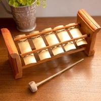 マホガニーの木製土台と鉄製の鍵盤でできた楽器です。 音階はA音です。 叩くと音が余韻を残して響きますので、集中して聞くと不思議な気分にさせてくれます。 指でミュートしながら叩くと、リズム楽器にもなります。 サイズ-鍵盤の長さ:約15cm、鍵盤の太さ:直径1cm。