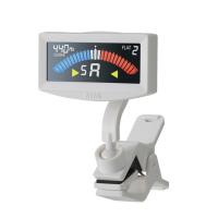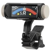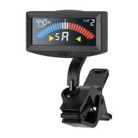 シンプルな機能と暗い場所でも視認しやすいLEDメーター表示のクリップ式チューナーです。 ディスプレイ部は緩やかな弧を描く斬新なフォルムで、従来のクリップチューナーとは一線を画すルックスにもこだわったデザインです。 暗い場所でも視認しやすいメーター表示に加え、大型ディスプレイを採用し、デザインのみならず実用性も十分に備えています。 ディスプレイ部は左右に180度、前後に130度の角度調整が可能なため、ギターなどの楽器に取り付けた際にもプレイヤーにとってベストな角度に微調整が可能。 クリップチューナーはマイク集音のチューナーとは違い、振動を検知してチューニングを行うため、周りの騒音や他の楽器の音の干渉を受ける事なく正確なチューニングを実現します。 クリップ部は、開きやすくしっかりと楽器を挟み込める適度な硬さのバネに、楽器に接触する面にはラバー素材のクッションを配置。 また、楽器接触面下部は可動式になっており多少の傾斜がある面にもしっかりとフィットする設計になっています。 オートパワーオフ機能を搭載し、3分間動作がなかった場合は自動的に電源がオフになり、不要な電池の消耗を押さえる事ができます。