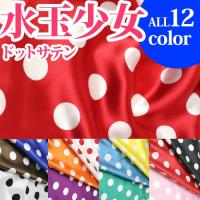 112cm ポリエステル100%/サテン 1m単位の切売り(ご購入例: 数量 2 = 2m) 色鮮やかでとってもかわいい水玉プリント! ポップなカラーから落ち着いたカラーまで、12色を揃えました。 ドット柄は約22mm、定番のドットプリントです。 ホワイトのドット部分と7ホワイト×レッド、12ホワイト×ブラックは若干の透け感があります。 普通の厚さでなめらかな、光沢のあるポリエステル100%のサテン生地です。 発表会や舞台衣装、コスチューム、コスプレ、装飾などに最適です。 ※単品で2mまでメール便可能です。