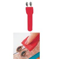 55×180×16mm(パッケージ) 40×145×12mm(本体/歯装着時) 鋼/ニッケルメッキ、ポリアセタール(歯部) ABS樹脂(ハンドル) オレフィン系樹脂(ケース) 型紙を生地に写す時、「縫う線」と「切る線」を同時に引くことができるダブルルレットです。 歯の間隔は10〜30mmまで5mm単位で調節可能。 丸歯とギザ歯の2タイプをセットしており、丸歯はチャコピーを使用してしるしを付ける時に、ギザ歯はパターンから直接布にしるしを付ける時に、差し替えてお使いください。 手にしっくりなじむ、使いやすいプラスチックフォルムも高い評価を受けています。 ※裏面の使用方法、使用上の注意をご確認のうえお使いください。 ※適正な用途・用法で使用し、子供の手の届かない所に保管してください。 ※1本から宅配扱いとなりますのでご了承ください。