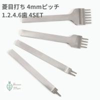 縫い目を着けるための工具菱目打ちです。 縫いやすい4mm巾 1.2.4.6歯の4本セットです。 商品長さ: 約9.8cm 歯長さ:約4mm 歯間隔:4mm |
