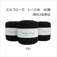 レース糸 3玉単位 ミルフローラ レース糸 40番60g 黒(501) レース糸40番 元廣 1,296円 |