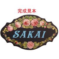 トールペイント図案付白木素材 カップローズのネームプレート