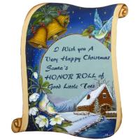 トールペイント図案付白木素材 巻紙のクリスマスプレート