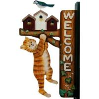 トールペイント図案付白木素材 ぶらさがりネコのウェルカムボード