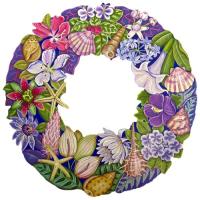 トールペイント図案付白木素材 トロピカルな花と貝のリース