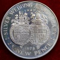 ジブラルタル 1972年 25ペンス プルーフ大型銀貨 女王夫妻銀婚式 8,800円 |