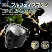 フルフェイスゴーグル着脱マスク 説明 ■ ゴーグル着脱可能なフルフェイスマスクです。 ■ マットブラックの高品位マスクに広視野ゴーグルをセット。 ■ 各部に設けたスリットが通気性を確保。 ■ サバゲー、コスプレからバイク搭乗時まで幅広い用途でご利用いただけます。 フルフェイスゴーグル着脱マスク 仕様 サイズ: 24x20x25(cm) 重さ: 250g 使用可能な頭サイズ: 50-65cm 素材: PC ABS セット内容: 本体x1 フルフェイスゴーグル着脱マスク ご注意 ※ 遊戯時は安全に配慮願います。 ※ 頭のサイズ、メガネ装着は個人差、形状差がありますので装着可否を保証するものではありません。 お客様毎の装着可否は保証及びサポート対象外となります。 ※ バイク搭乗時の安全性を保証するものではありません。 バイク搭乗時は本商品以外の装備を併用することにより安全と法令の遵守を心掛けてください。 ※ ご利用は安全と公序良俗に反しないようご配慮願います。 ※ カラー、形状は生産時期により変更される場合がございます。