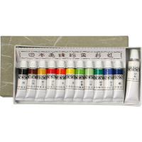 チューブ入り 容量:5mL <色名> 黒、代赭(茶)、黄土、洋紅、朱、黄、若葉、白緑、緑青、群青、藍 胡粉のみ15mL 初心者用として最適の絵の具です。 少量のにかわが入っています。 商品重量:約142g 箱サイズ:約178×84×13mm |