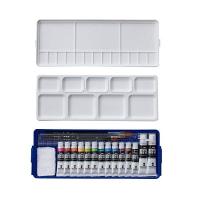 特長 描きやすく発色あざやか 色を重ねてもにじまず、ひと筆で下の色が隠せます。 ムラなく伸びやかな描き味 セット内容 Wパレット付ケース 11ml絵具・14色+20mlホワイト 黒軸デザイン筆(ナイロン)3本(面相筆、彩色筆、平筆) 黒軸棒 アクリル製ミゾ付定規30cm ミニふきん |